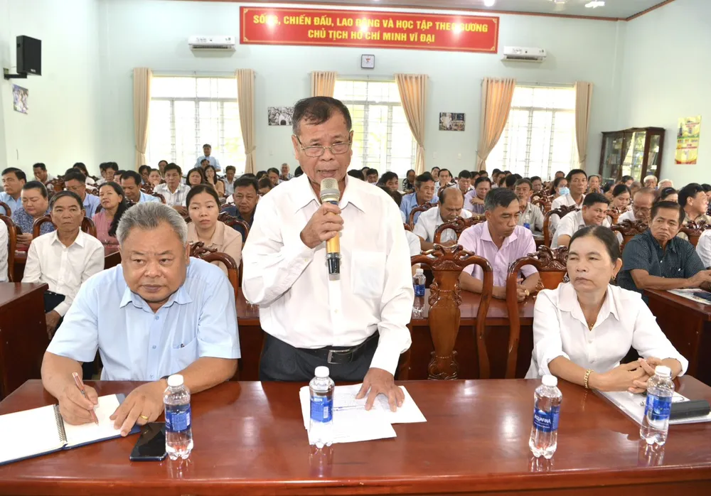 Cử tri huyện Củ Chi phát biểu tại buổi tiếp xúc. Ảnh: CAO THĂNG