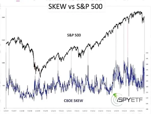 Hiện nay, CBOE Skew Index đã tăng 30% kể từ cuối tháng 9. Vào ngày 12-10-2015, nó đã đóng cửa mức 148,92 điểm, cao hơn cả năm 2006, trước khi bong bóng nhà đất Hoa Kỳ vỡ tung và năm 1998 khi quỹ Long term Capital Management phá sản.