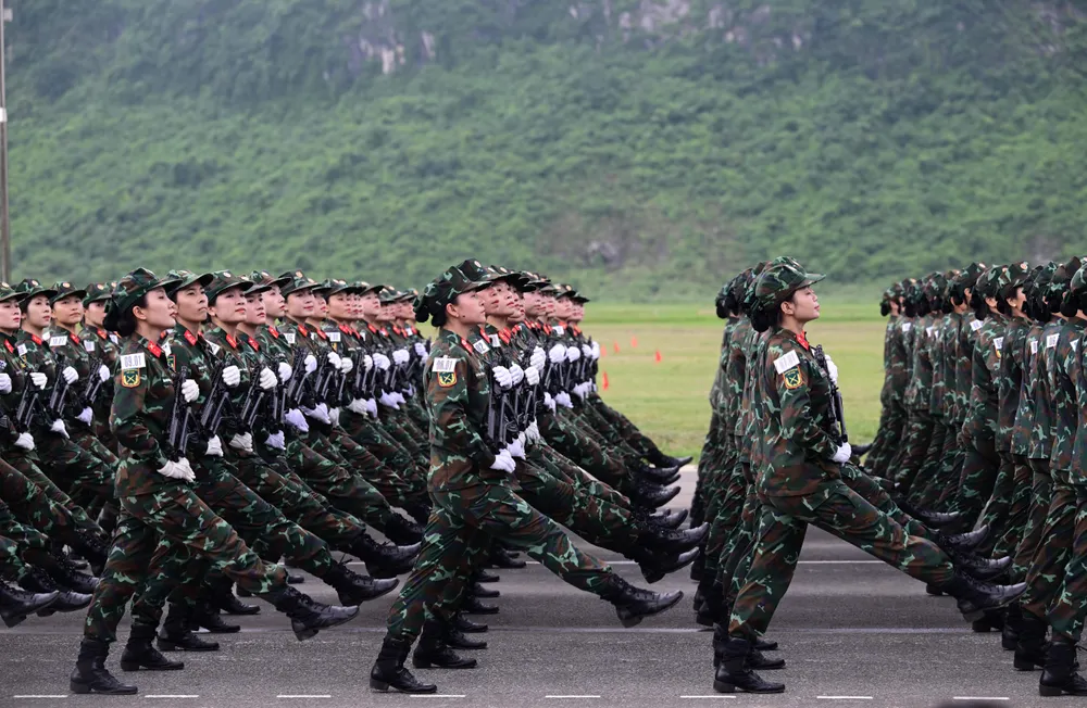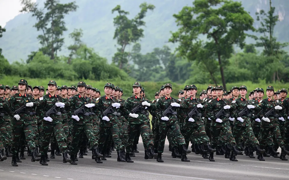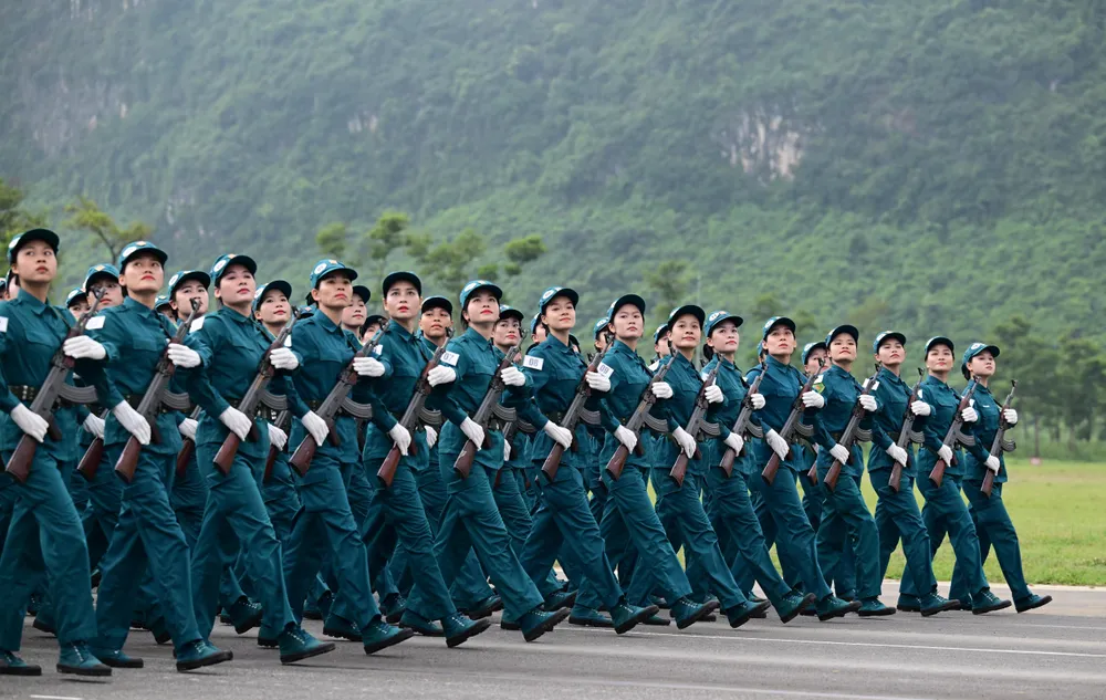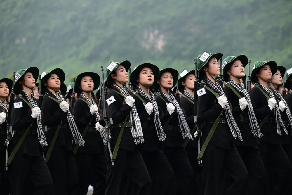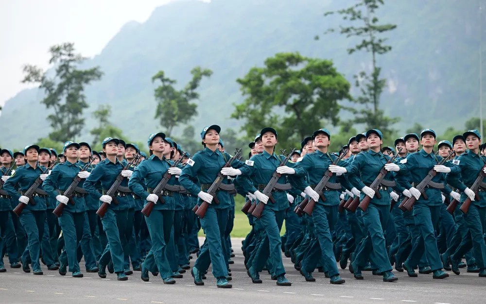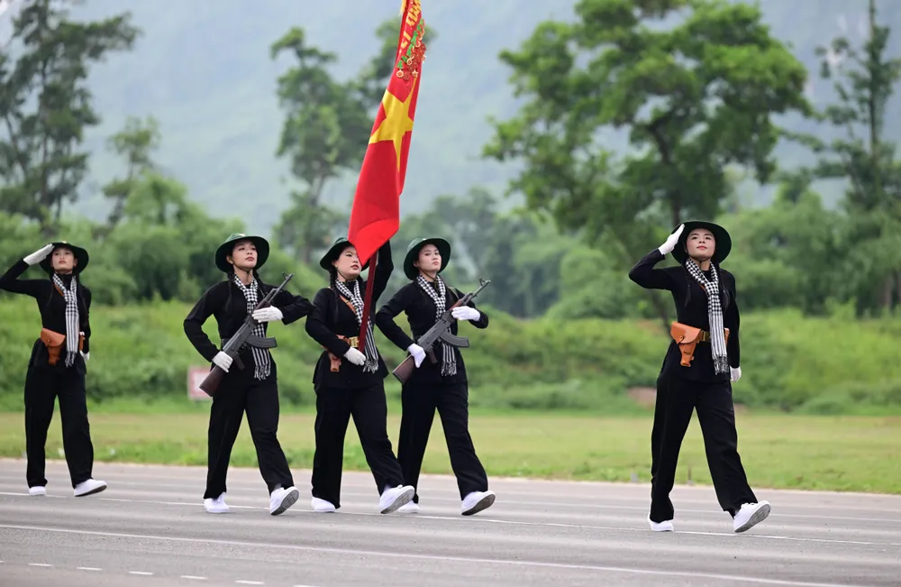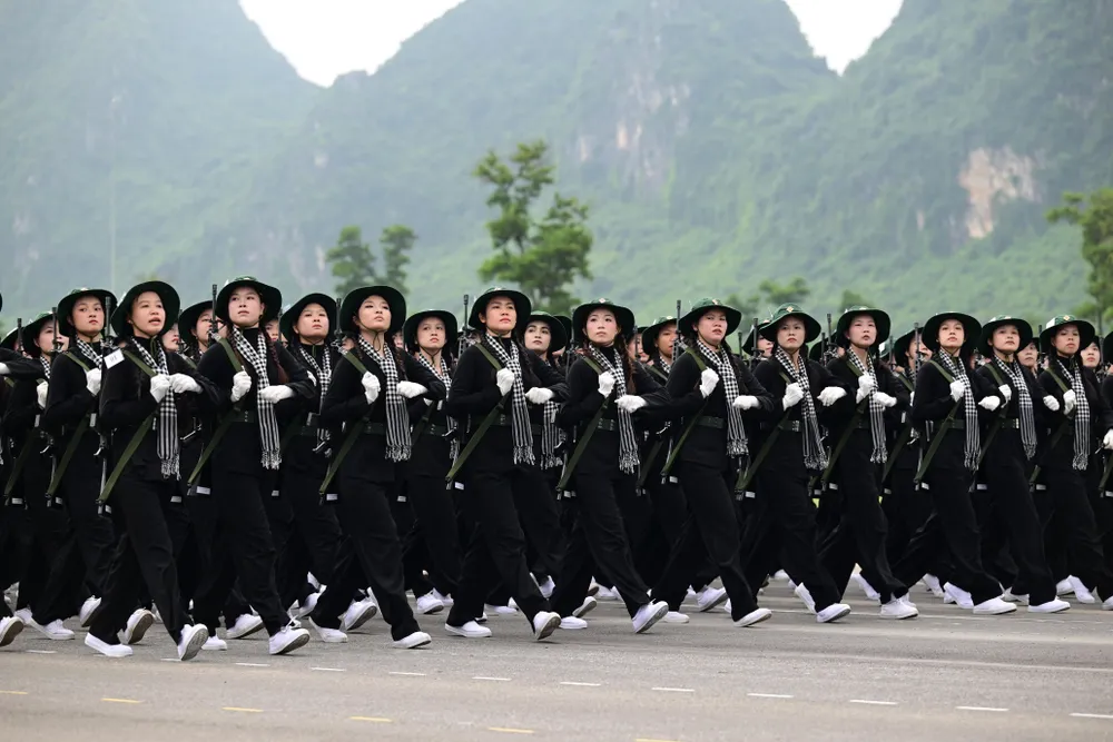 Đội hình khối nữ dân quân tự vệ các dân tộc Việt Nam