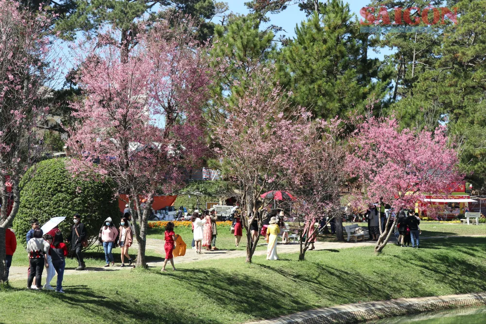Hồ Xuân Hương là một trong những khu vực có nhiều cây mai anh đào để người dân và du khách tham quan. Ảnh: ĐOÀN KIÊN