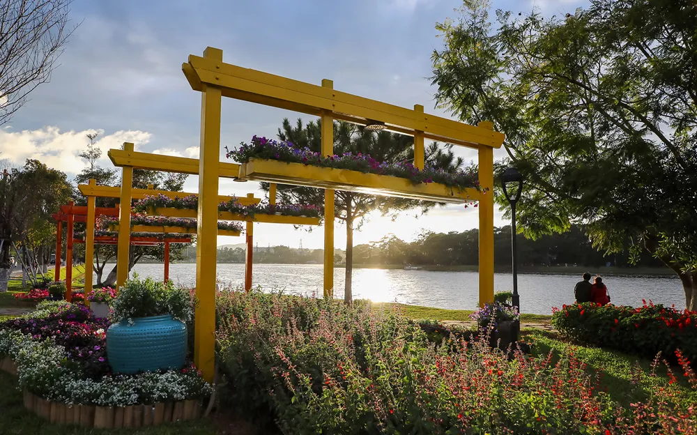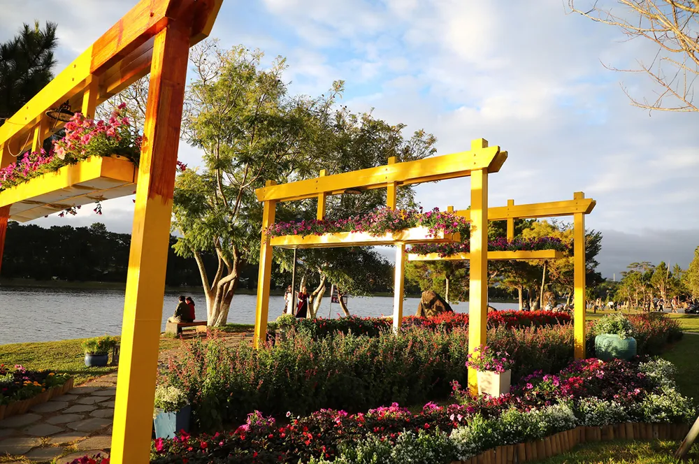 Không gian bên hồ Xuân Hương được trang trí bằng các tiểu cảnh
