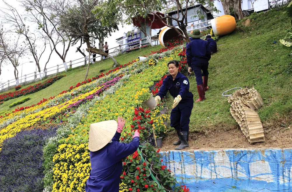 Tại một số khu vực như các công viên Yersin, Trần Hưng Đạo, Trần Quốc Toản, quanh hồ Xuân Hương, taluy phía trước khách sạn Ngọc Lan, dọc đường Lê Đại Hành, mảng hoa đường Nguyễn Văn Cừ, nút giao thông ĐT723 hướng đi Darahoa đã được sắp đặt không gian trang trí hoa, tiểu cảnh hoa tạo điểm nhấn.