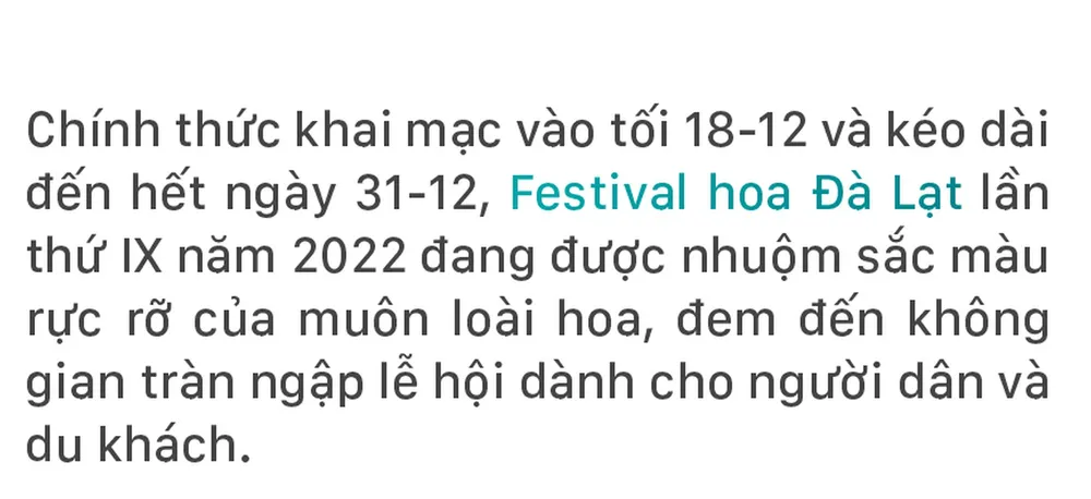(ĐTTCO) - Chính thức khai mạc vào tối 18-12 và kéo dài đến hết ngày 31-12, Festival hoa Đà Lạt lần thứ IX năm 2022 đang được nhuộm sắc màu rực rỡ của muôn loài hoa, đem đến không gian tràn ngập lễ hội dành cho người dân và du khách.