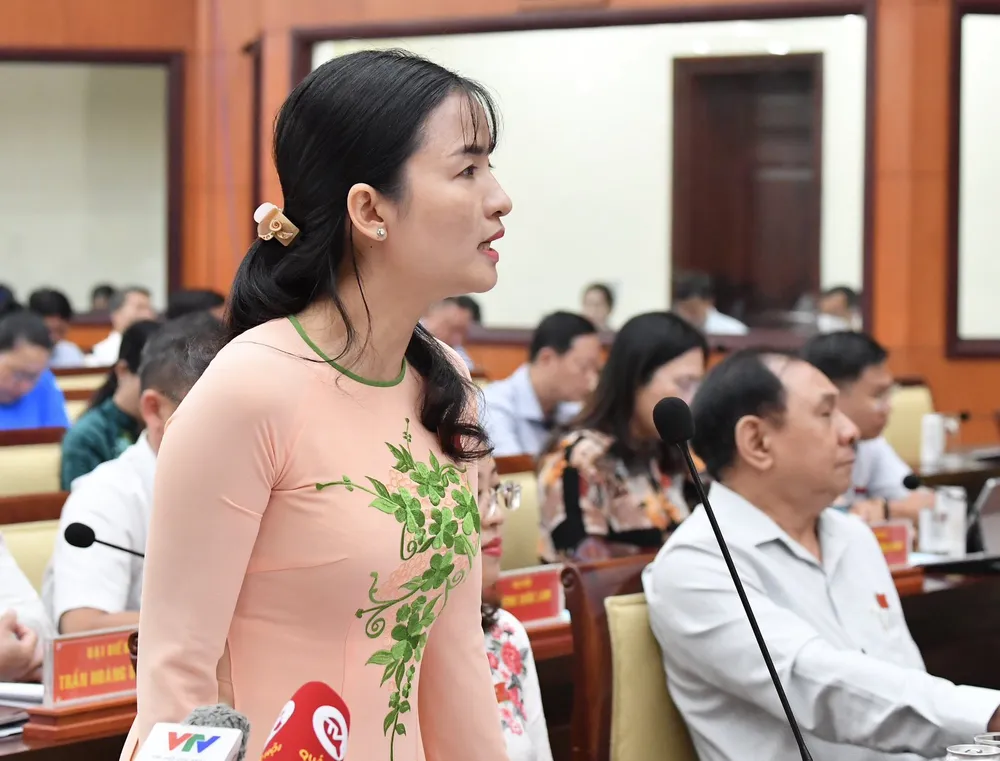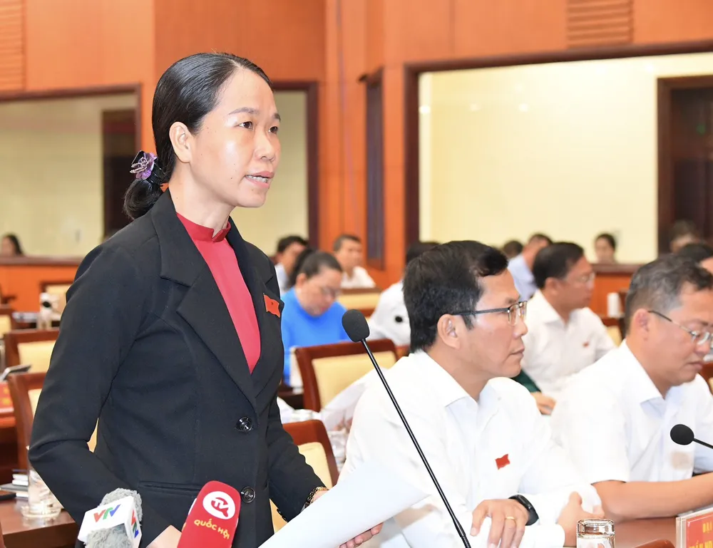 ĐB Lê Thị Trúc Lâm đặt câu hỏi chất vấn Chủ tịch UBND quận 12. Ảnh: VIỆT DŨNG