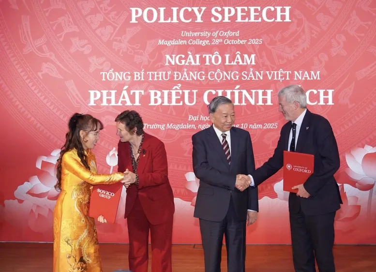 Phát biểu trong buổi gặp gỡ, Tổng Bí thư Tô Lâm hoan nghênh các hợp tác giữa Đại học Oxford với các doanh nghiệp, cơ sở nghiên cứu Việt Nam, hoan nghênh hợp tác giữa Tập đoàn Sovico, Vietjet và Đại học Oxford.