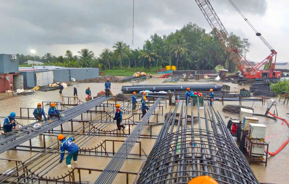 "Tuy nhiên, để đảm bảo tiến độ đã cam kết với chủ đầu tư, anh em kỹ sư, công nhân gói thầu XL15 cố gắng sắp xếp, bố trí thời gian làm việc hợp lý để ứng phó, lúc nào nước triều vừa rút là triển khai làm việc ngay, tranh thủ cả lúc nước hạ thấp vào ban đêm", ông Triệu Văn Toàn chia sẻ.