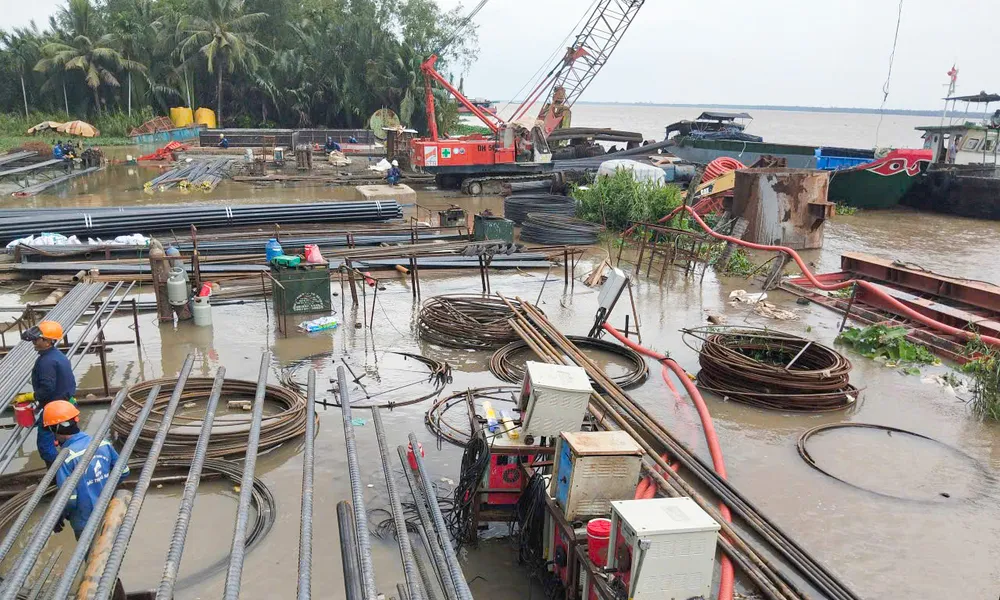 Triều cường cũng ảnh hưởng một số dự án giao thông trọng điểm đang được triển khai tại khu vực ĐBSCL.