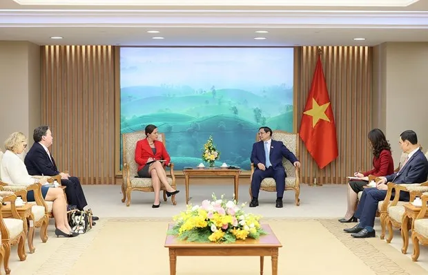 Thủ tướng Phạm Minh Chính tiếp bà Emily Blanchard, Kinh tế trưởng, Thứ trưởng Bộ Ngoại giao Hoa Kỳ. (Ảnh: Dương Giang/TTXVN)