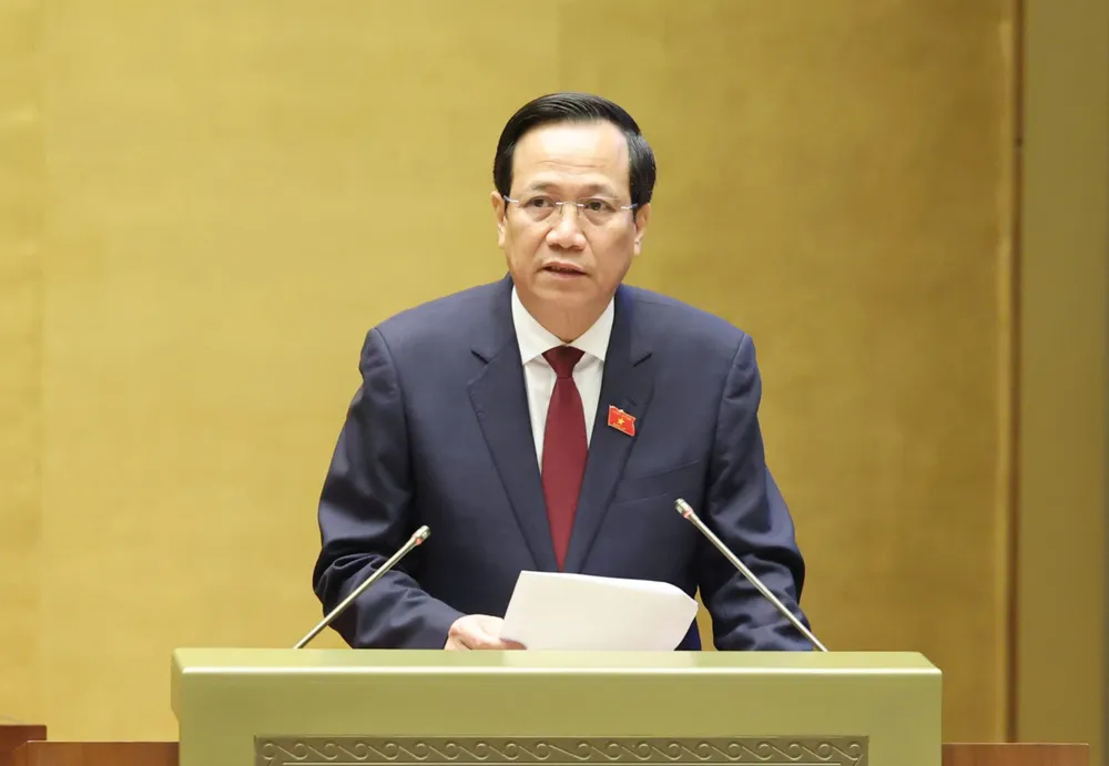 Bộ trưởng Bộ LĐTB-XH Đào Ngọc Dung trình bày tờ trình dự án Luật Việc làm (sửa đổi). Ảnh: QUANG PHÚC