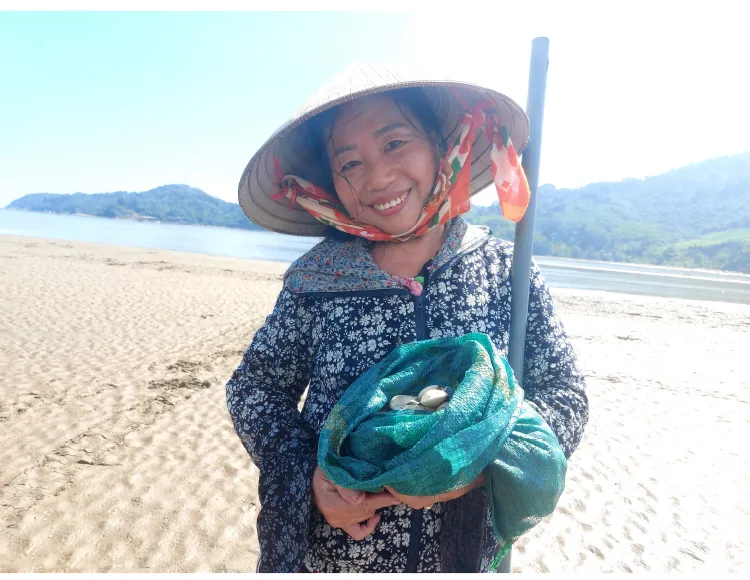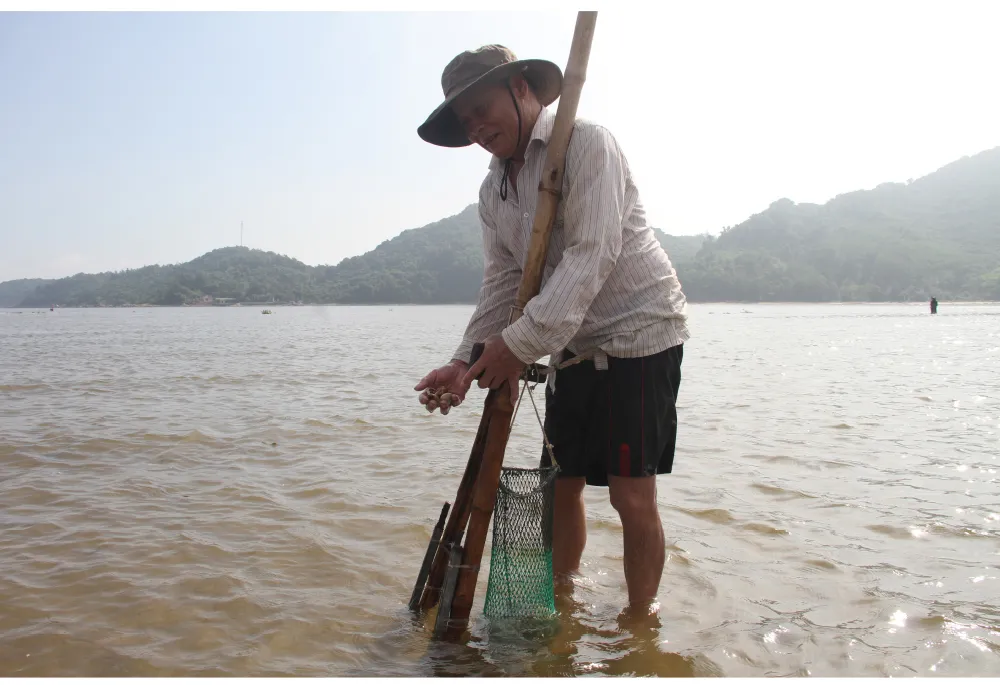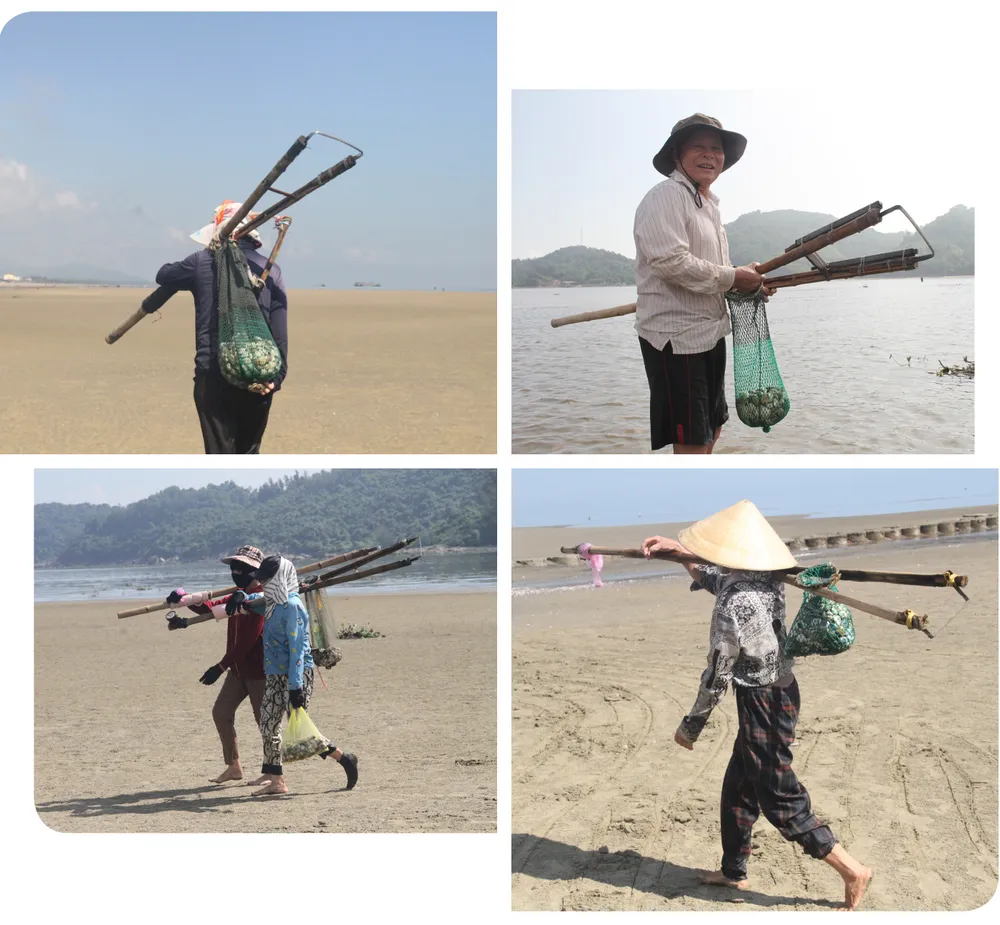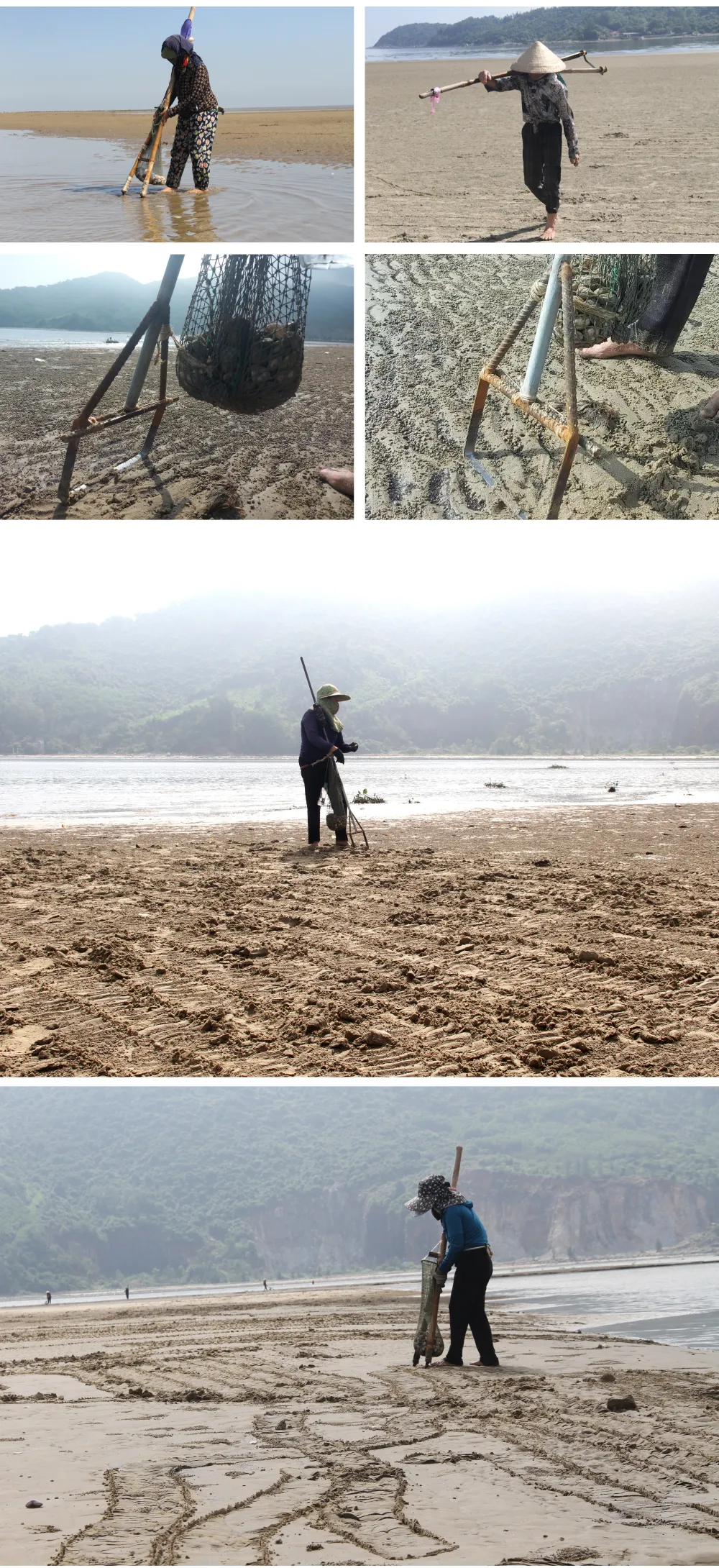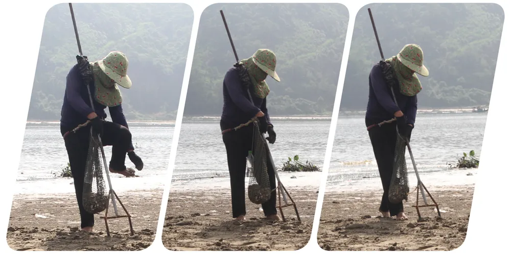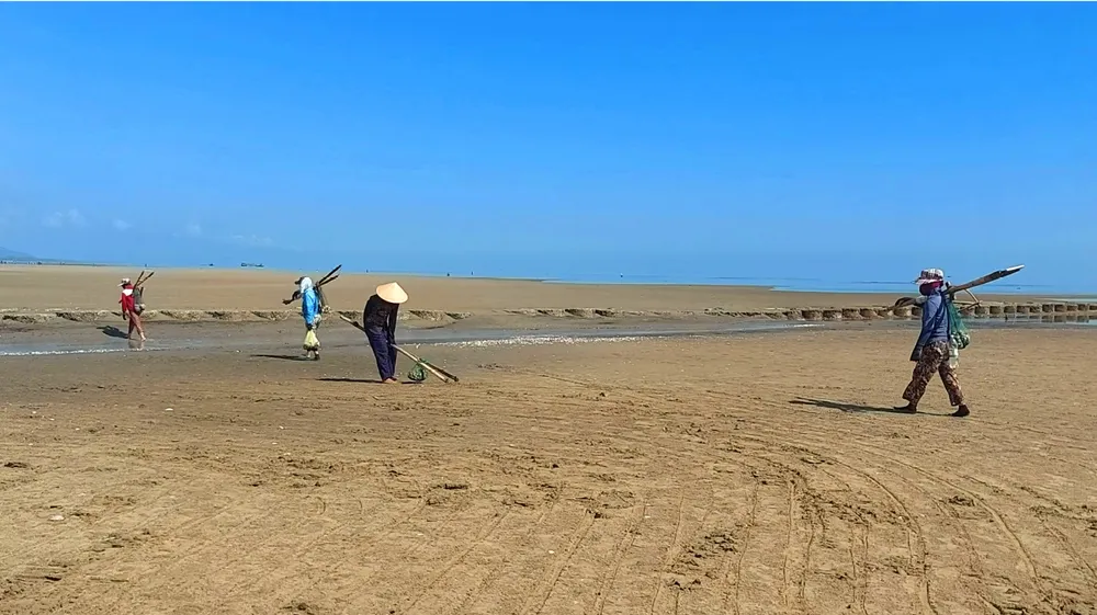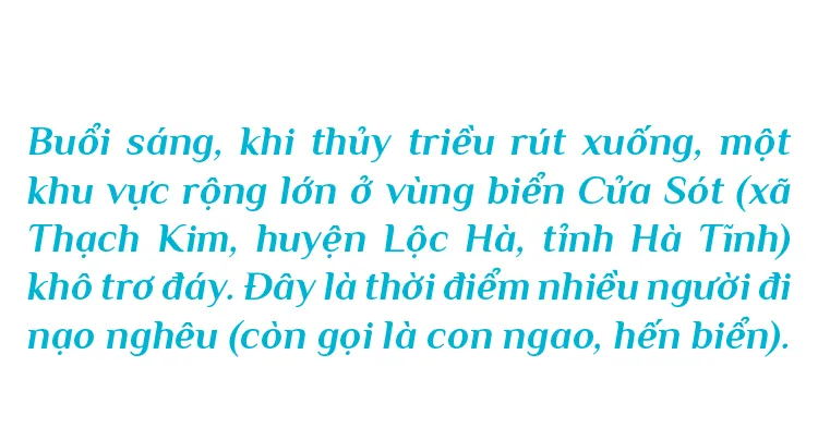 (ĐTTCO) - Buổi sáng, khi thủy triều rút xuống, một khu vực rộng lớn ở vùng biển Cửa Sót (xã Thạch Kim, huyện Lộc Hà, tỉnh Hà Tĩnh) khô trơ đáy. Đây là thời điểm nhiều người đi nạo nghêu (còn gọi là con ngao, hến biển).