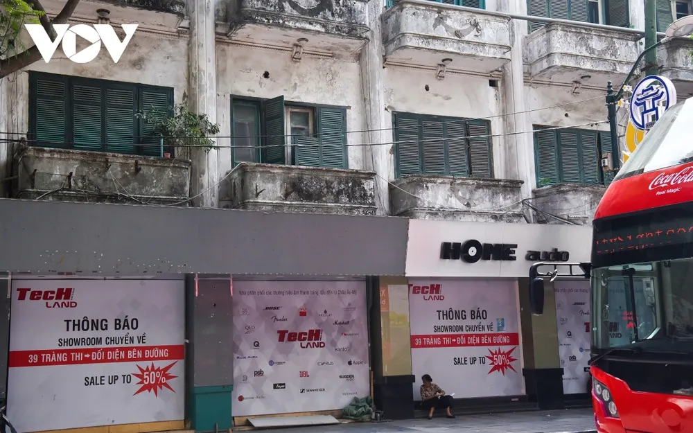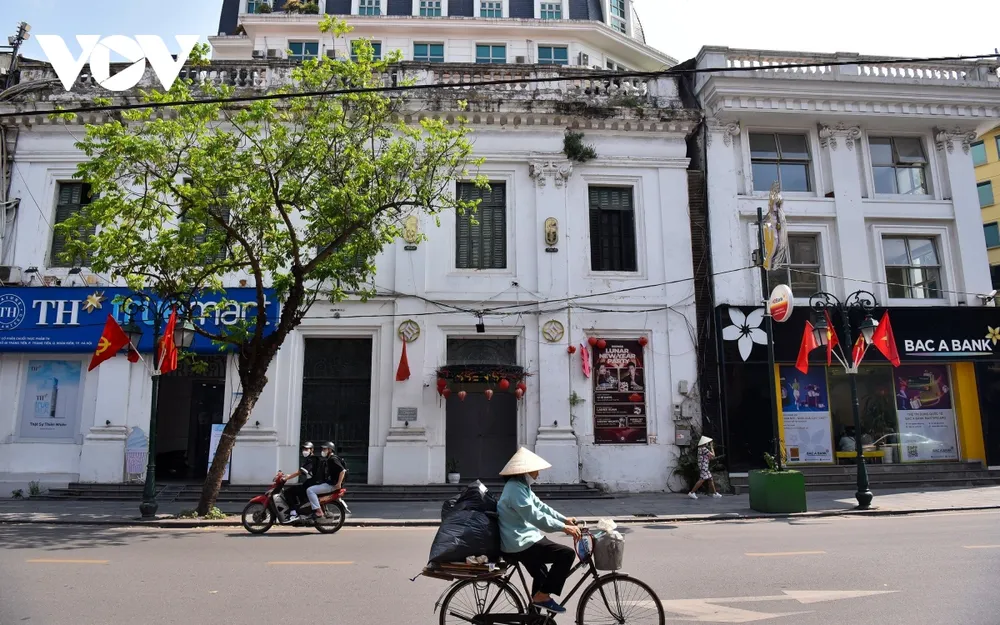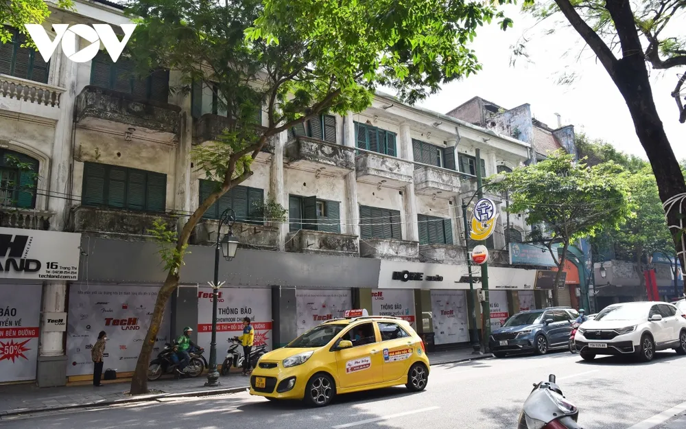 Nằm ở vị trí đắc địa tại số 6 Tràng Tiền, tòa biệt thự 2 tầng, sở hữu mặt tiền kéo dài hàng chục mét với phong cách kiến trúc Pháp cổ kính cũng đang bị bỏ hoang.
