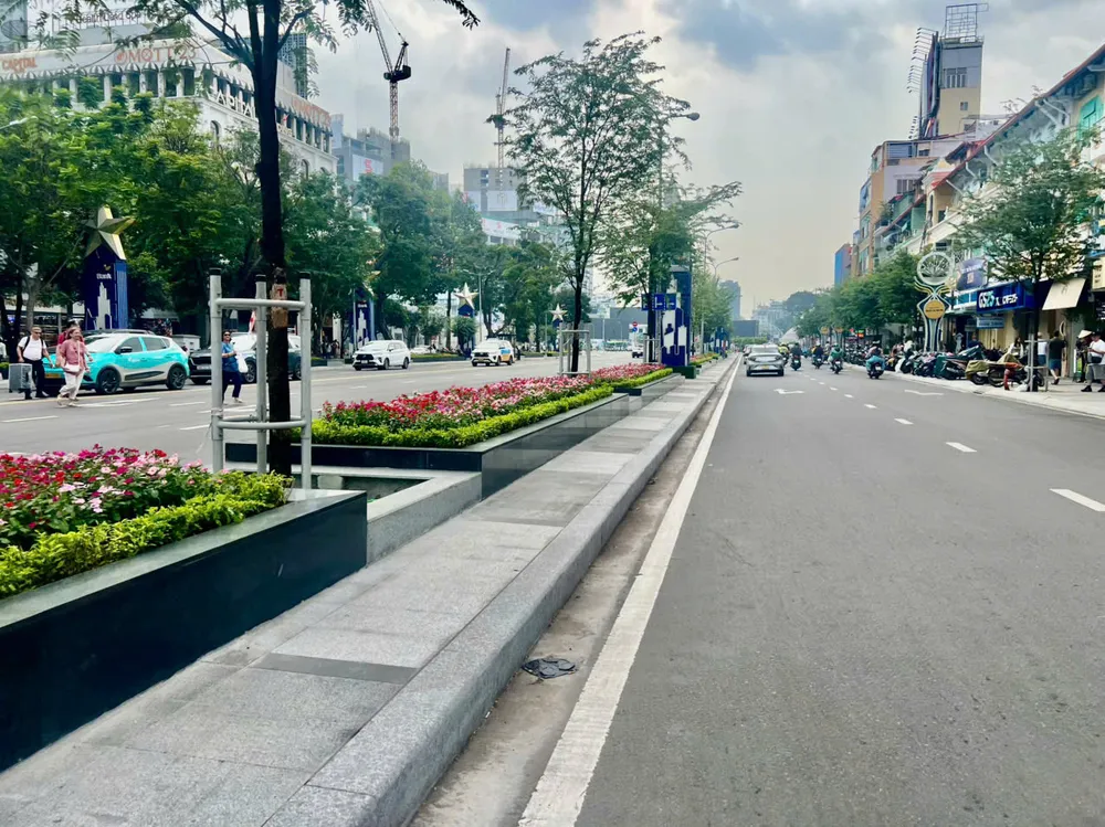 Điểm nhấn nổi bật của đợt chỉnh trang lần này là không gian xanh và cảnh quan hoa kiểng. Dải phân cách giữa đường được lát đá granite, các bồn cây được ốp đá đồng bộ và trồng thêm nhiều loại hoa, cây bụi với màu sắc rực rỡ.