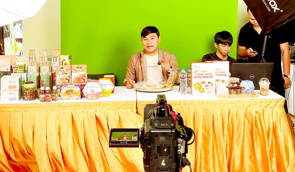 Doanh nghiệp phát trực tiếp phiên bán hàng trên không gian số. Ảnh: HOÀNG HÙNG