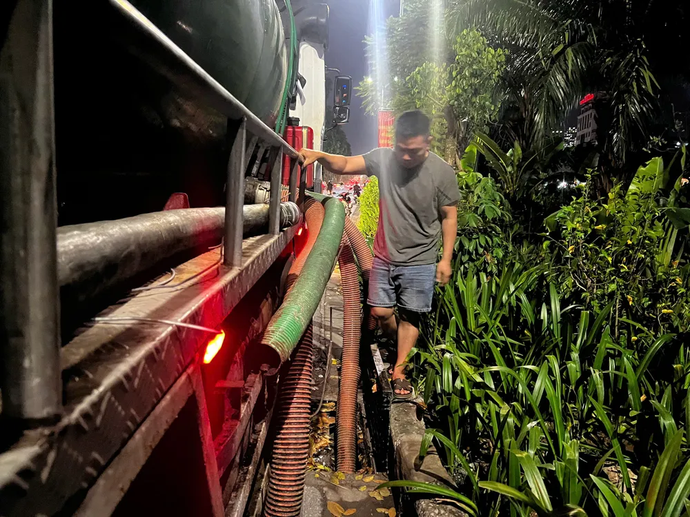 Hình ảnh chiếc xe bồn mang chất thải đổ ra sông Tô Lịch