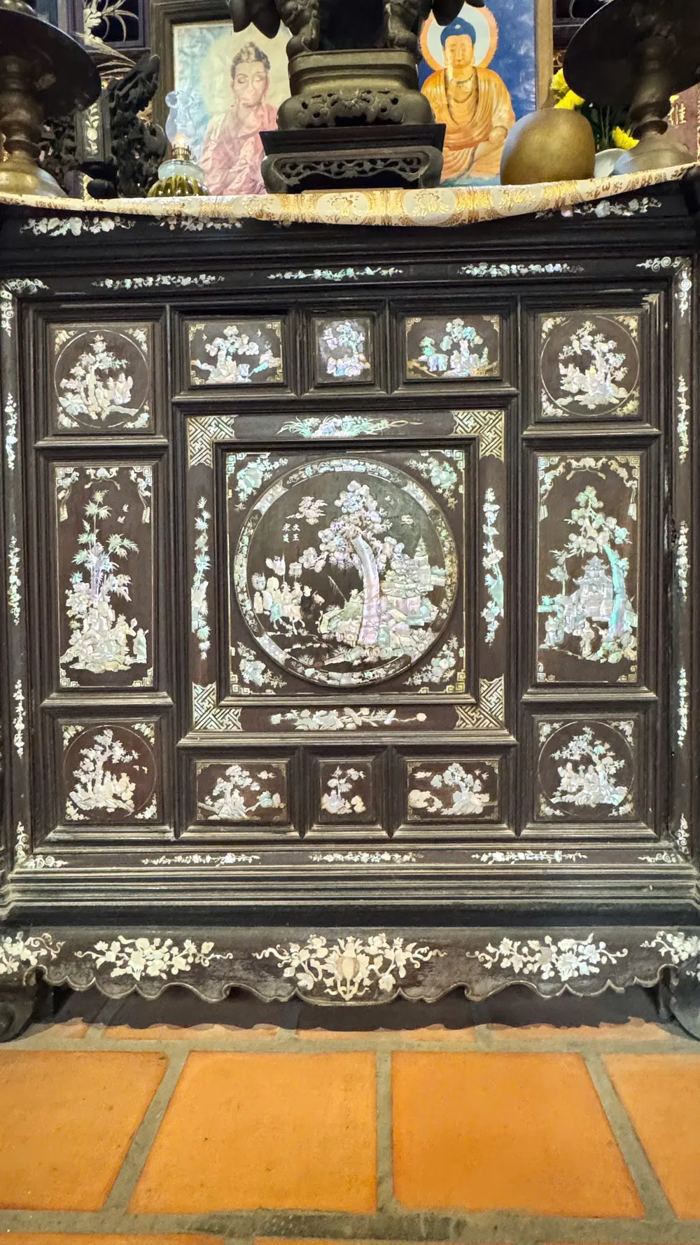 Ngoài ra, các vật dụng bằng gỗ, gốm sứ, đồng như: tủ thờ, bàn ghế, bình, đĩa, tách, lư hương, tượng rất thẩm mỹ và có giá trị quý hiếm cũng được bảo tồn đến hôm nay. Không gian bên ngoài là phần sân rộng, bày trí những cây kiểng cổ; phía trước có hàng rào và cửa cổng chắc chắn, khang trang...