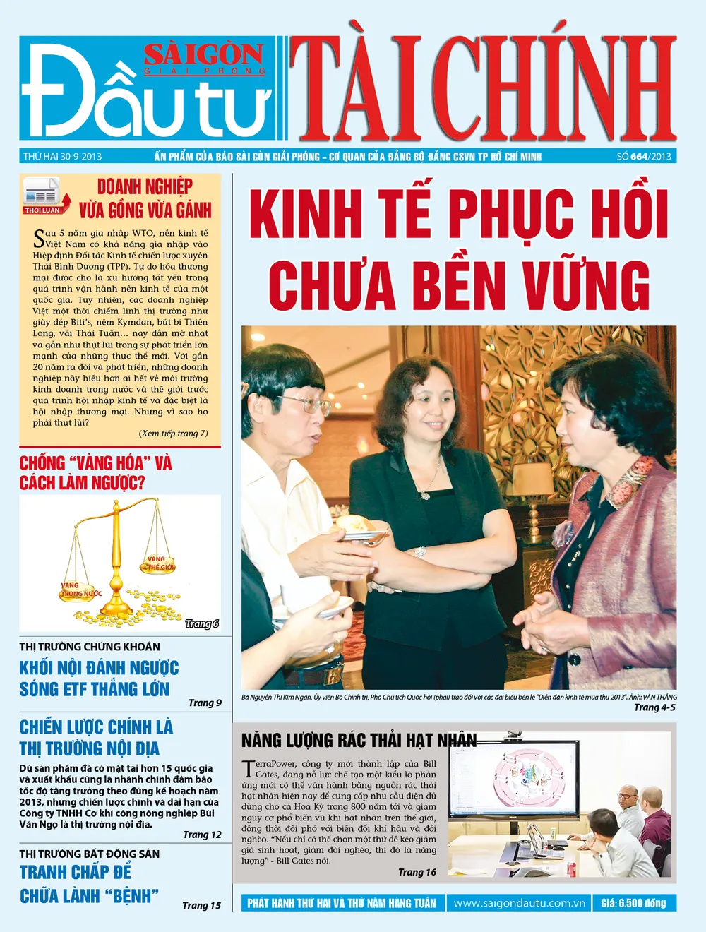 *CHỦ ĐIỂM-SỰ KIỆN: Báo ĐTTC số 663 ra ngày 26-9-2013 trên mục Chủ điểm-Sự kiện có bài: “Kinh tế 9 tháng năm 2013 - Đã phục hồi nhưng vẫn lo” phân tích việc phục hồi này từ các số liệu báo cáo của Bộ Kế hoạch-Đầu tư với nhiều chỉ số kinh tế vĩ mô đã được cải thiện và tăng dần, nhưng kèm theo đó là những lo ngại kinh tế chưa thể thoát đáy. Tại diễn đàn kinh tế mùa thu 2003 diễn ra cuối tuần qua tại TP Huế, nhiều chuyên gia cũng có cùng quan điểm này.