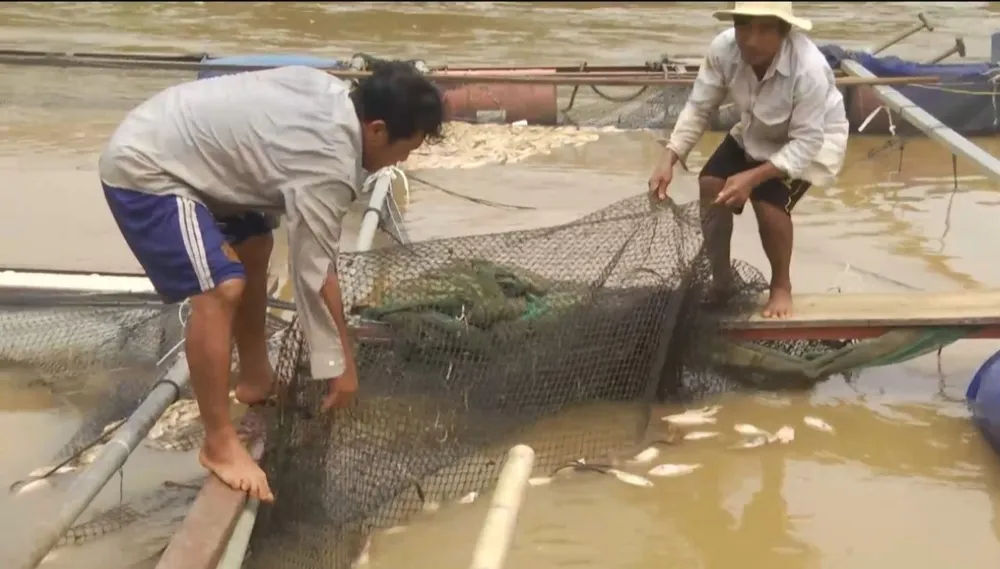 Nhưng do mưa lớn, nước trên thượng nguồn đổ nhanh nên nhiều ngư dân bị động, trở tay không kịp, cá chết trắng bè do bị ngộp oxy, nhiều lồng bè bị lũ lớn cuốn trôi và người dân trắng tay sau lũ.
