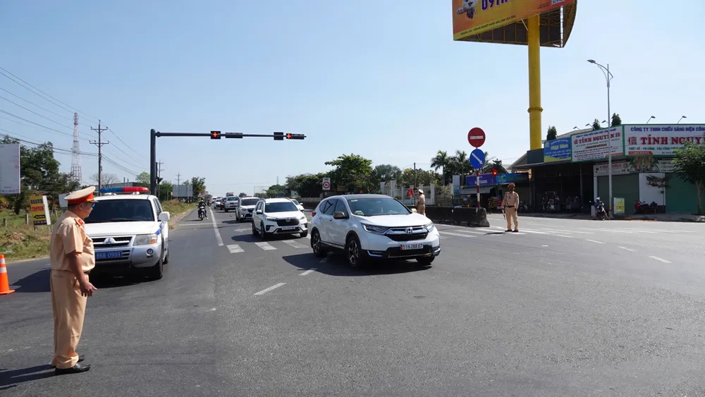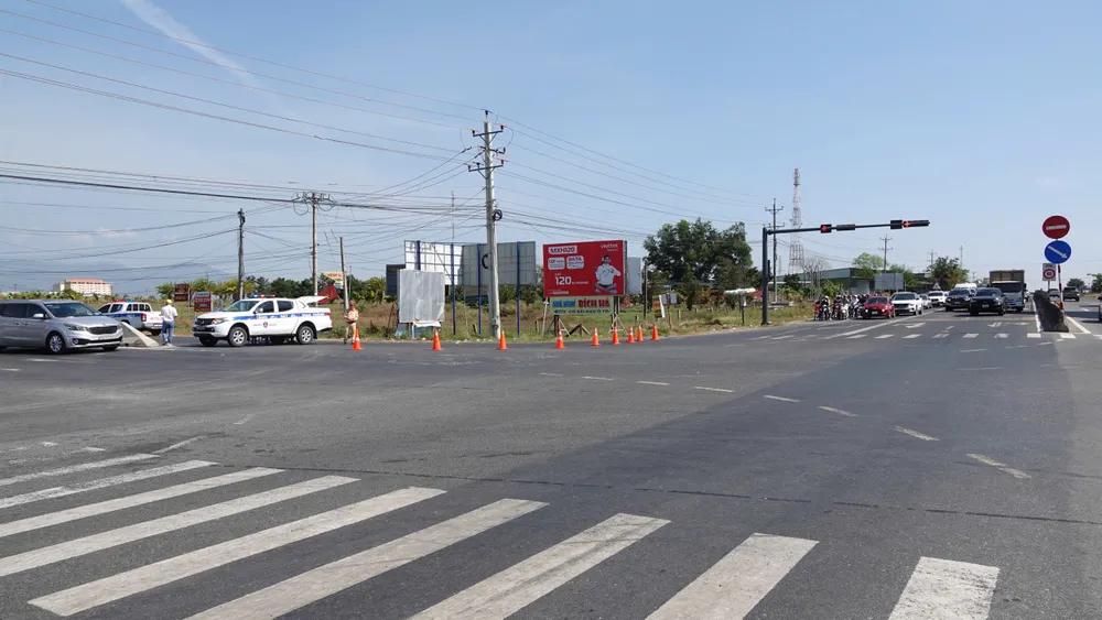 Ghi nhận tại đường dẫn vào đường cao tốc Vĩnh Hảo - Phan Thiết và Km1717 Quốc lộ 1A (huyện Tuy Phong, tỉnh Bình Thuận), lực lượng cảnh sát giao thông đứng chốt chặn, các phương tiện không được đi vào nút giao này mà phải đi thẳng trên Quốc lộ 1A.