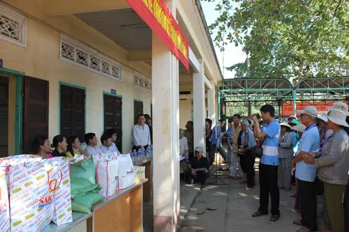 | Đại diện nhà tài trợ tặng quà tết cho bà con. |