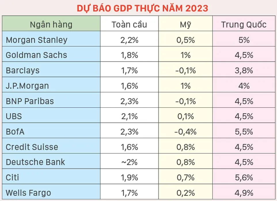 Các nhà kinh tế dự báo tăng trưởng kinh tế toàn cầu sẽ ở mức khoảng 2% trong 2023, giảm đáng kể so với 2022 và thấp hơn nhiều với mức bình quân 3,3% của thập niên trước đại dịch.