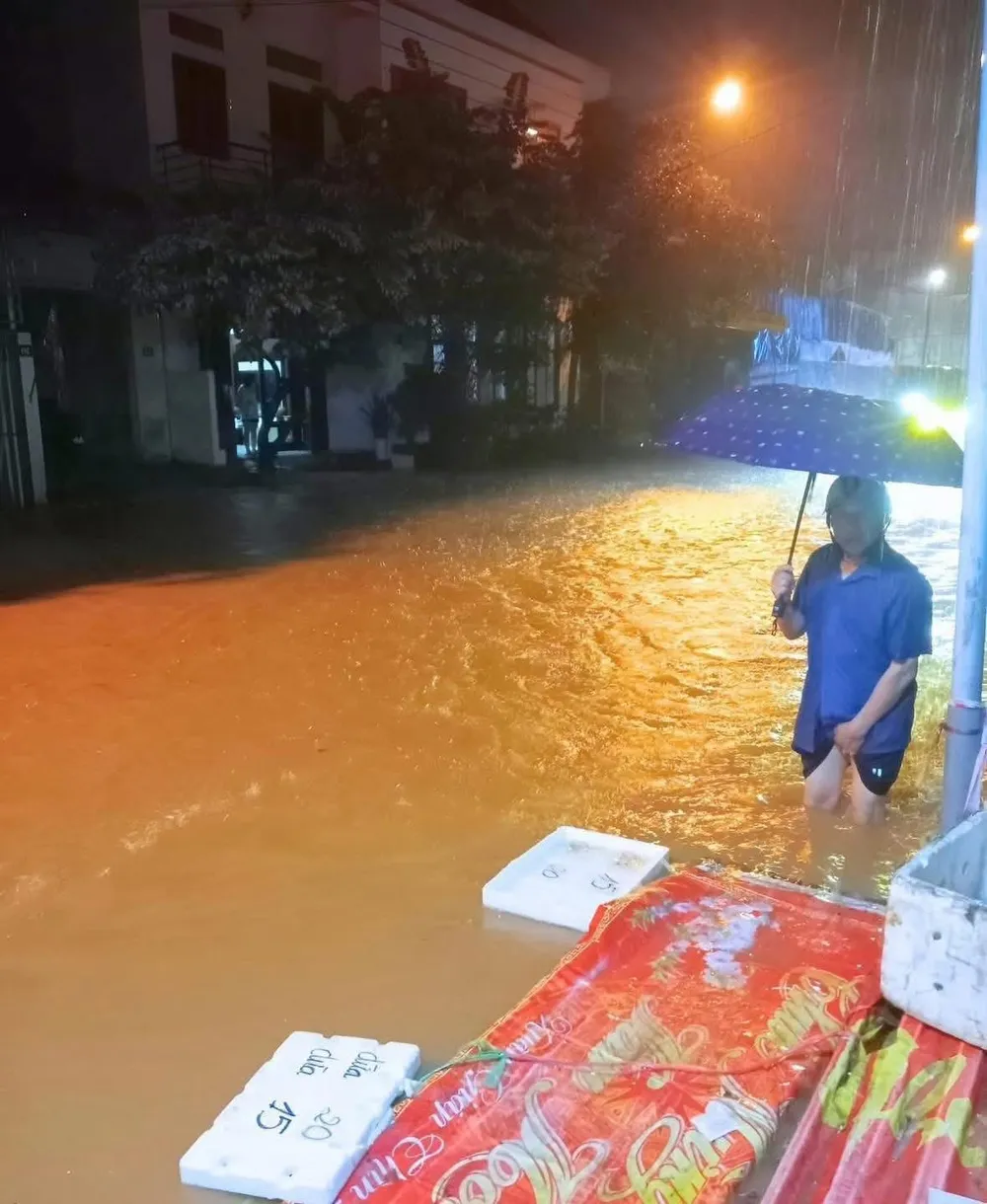 Ngập sâu do mưa đêm 5-8 tại phường Yên Bái (tỉnh Lào Cai). Ảnh: LAOCAIONLINE