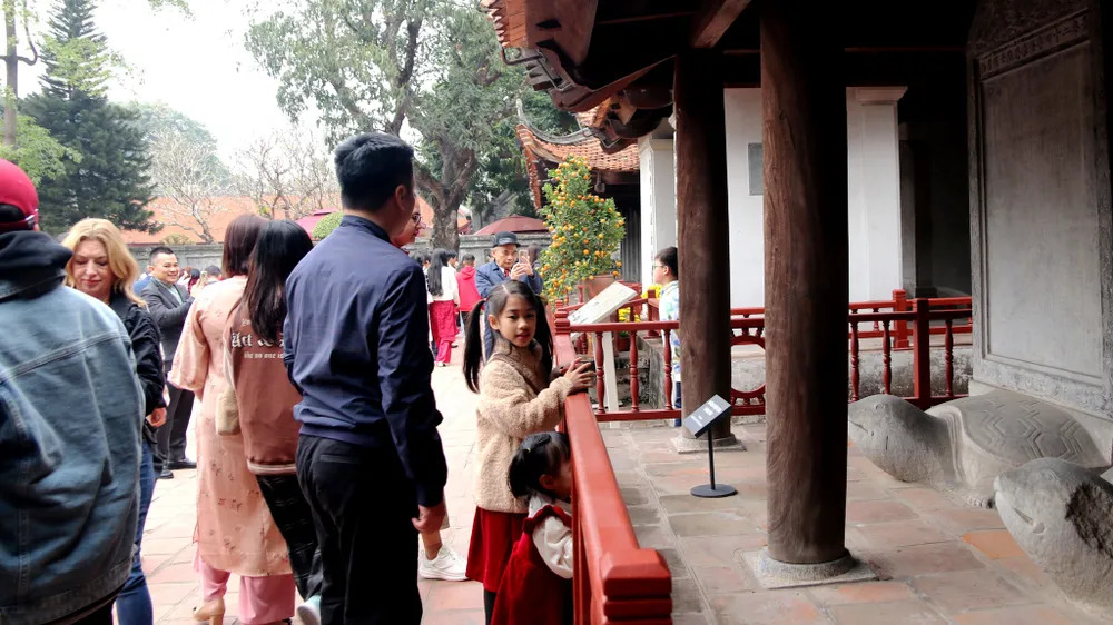 Không gian tại Văn Miếu - Quốc Tử Giám trong những ngày đầu xuân trở nên nhộn nhịp nhưng vẫn giữ được vẻ trang nghiêm, linh thiêng. Những người đến xin chữ không chỉ cầu may mà còn tìm về cội nguồn văn hóa, hiểu thêm giá trị của chữ nghĩa và tri thức. Đây cũng là dịp để mọi người nhắc nhở nhau về tầm quan trọng của việc học hành, rèn luyện đạo đức và sống có ích cho xã hội.