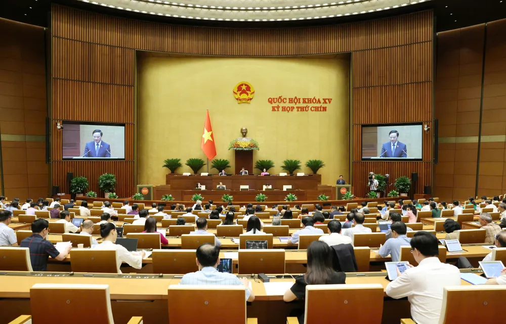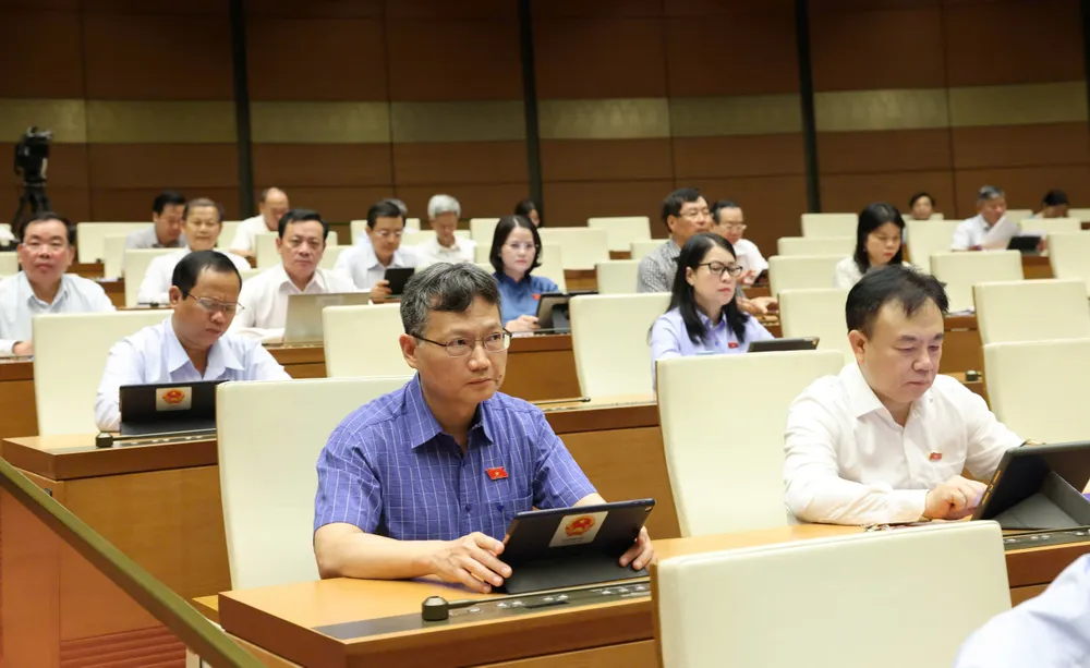 Sáng 7-5, tiếp tục kỳ họp thứ 9, Quốc hội cho ý kiến về dự thảo Nghị quyết của Quốc hội sửa đổi, bổ sung một số điều của Hiến pháp năm 2013.