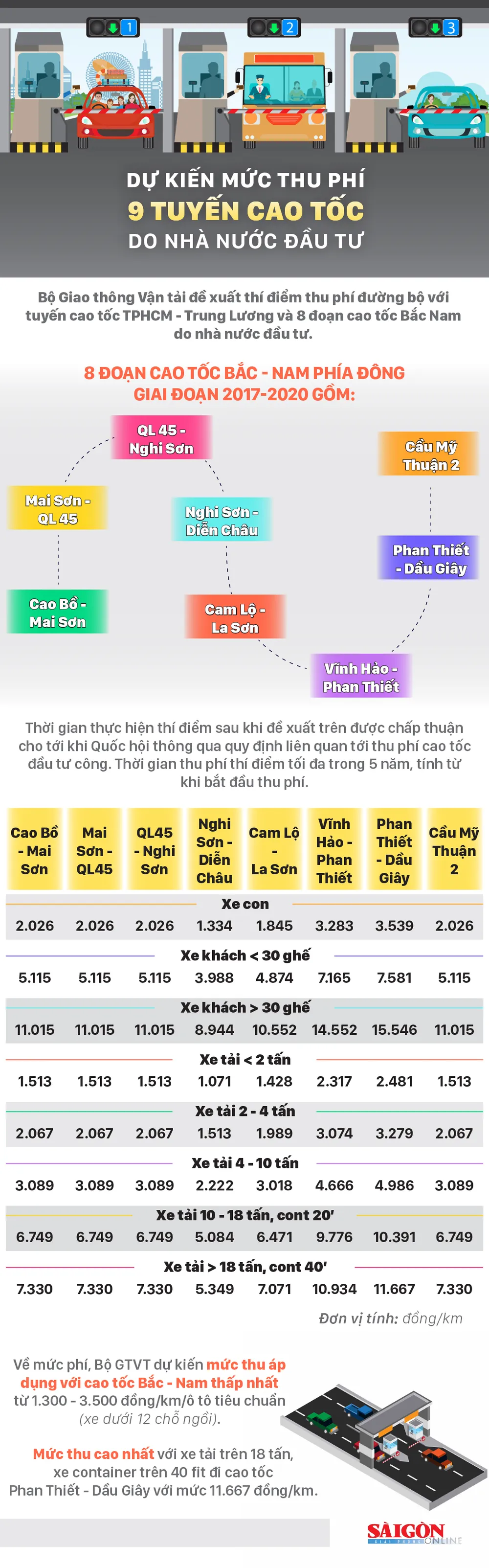 Dự kiến mức thu phí 9 tuyến cao tốc do Nhà nước đầu tư