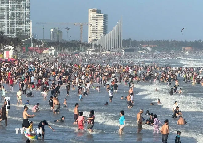 Đông đảo du khách đổ về khu vực bãi Sau, phường Vũng Tàu trong kỳ nghỉ Tết năm nay. (Ảnh: Huỳnh Sơn/TTXVN)