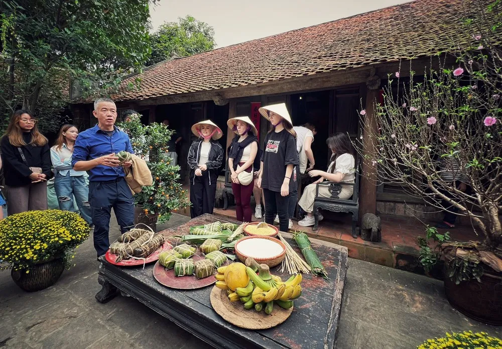 Du khách quốc tế trải nghiệm Tết Việt truyền thống. (Ảnh: Mai Mai/Vietnam+)