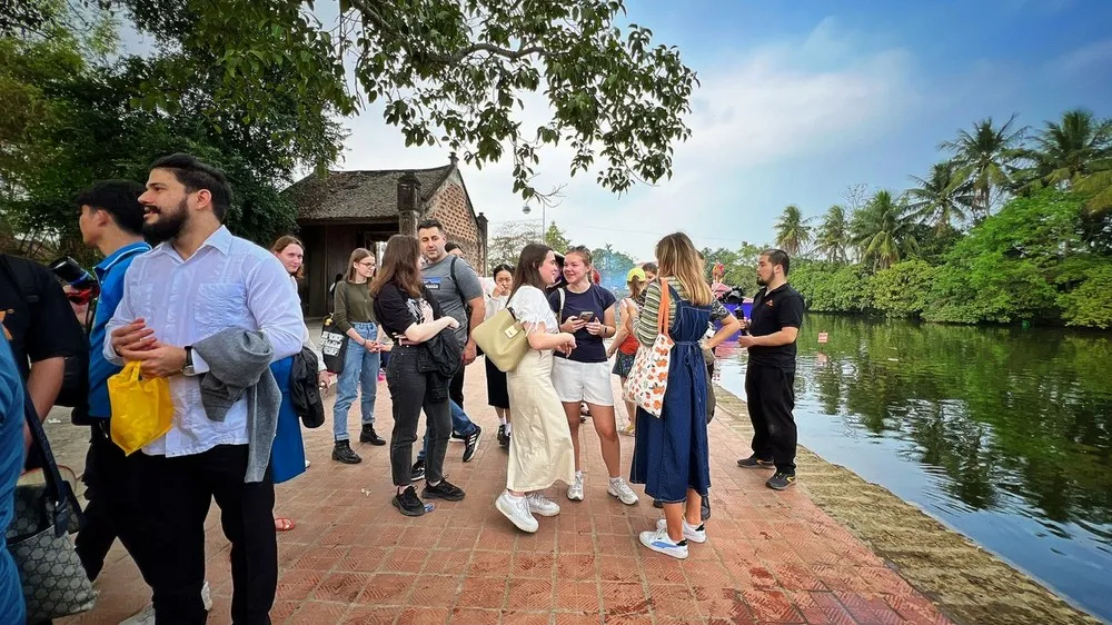 Du khách quốc tế tham quan Đường Lâm. (Ảnh: Mai Mai/Vietnam+)