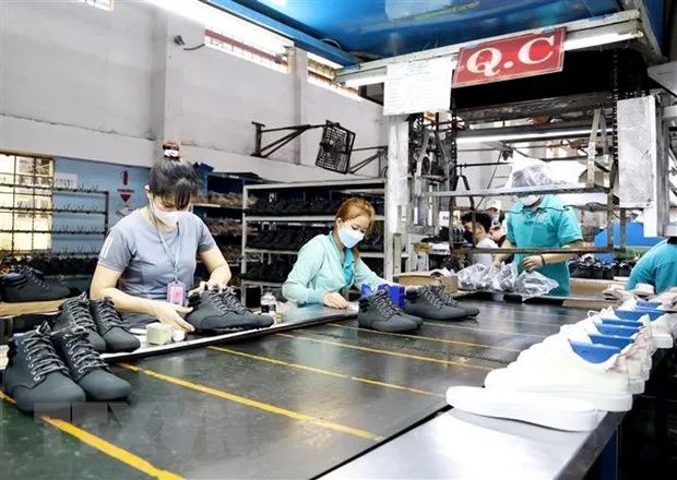 Công nhân làm việc trong xưởng sản xuất giày Gia Định, thành phố Thủ Đức, Thành phố Hồ Chí Minh. (Ảnh: Hồng Đạt/TTXVN)