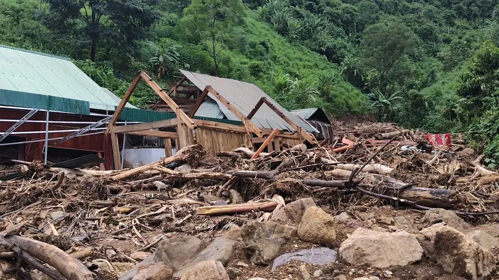 Nhiều ngôi nhà của bà con ở xã Nhôn Mai bị đổ sập, cuốn trôi sau lũ lịch sử. Ảnh: HỒ VĂN NGỢI