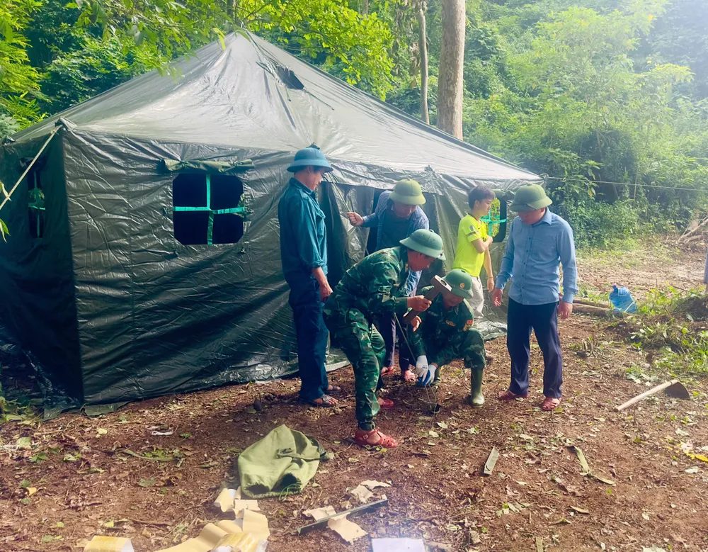 Bộ Chỉ huy Quân sự tỉnh Nghệ An đã huy động phương tiện vận chuyển vật liệu đến địa phương. Từ chiều 10-8, công tác dọn mặt bằng bắt đầu triển khai. Theo kế hoạch hôm nay 11-8, các lực lượng vũ trang cùng người dân sẽ dựng 13 nhà bạt cho 17 hộ (một số hộ sống chung) bị thiệt hại nặng.