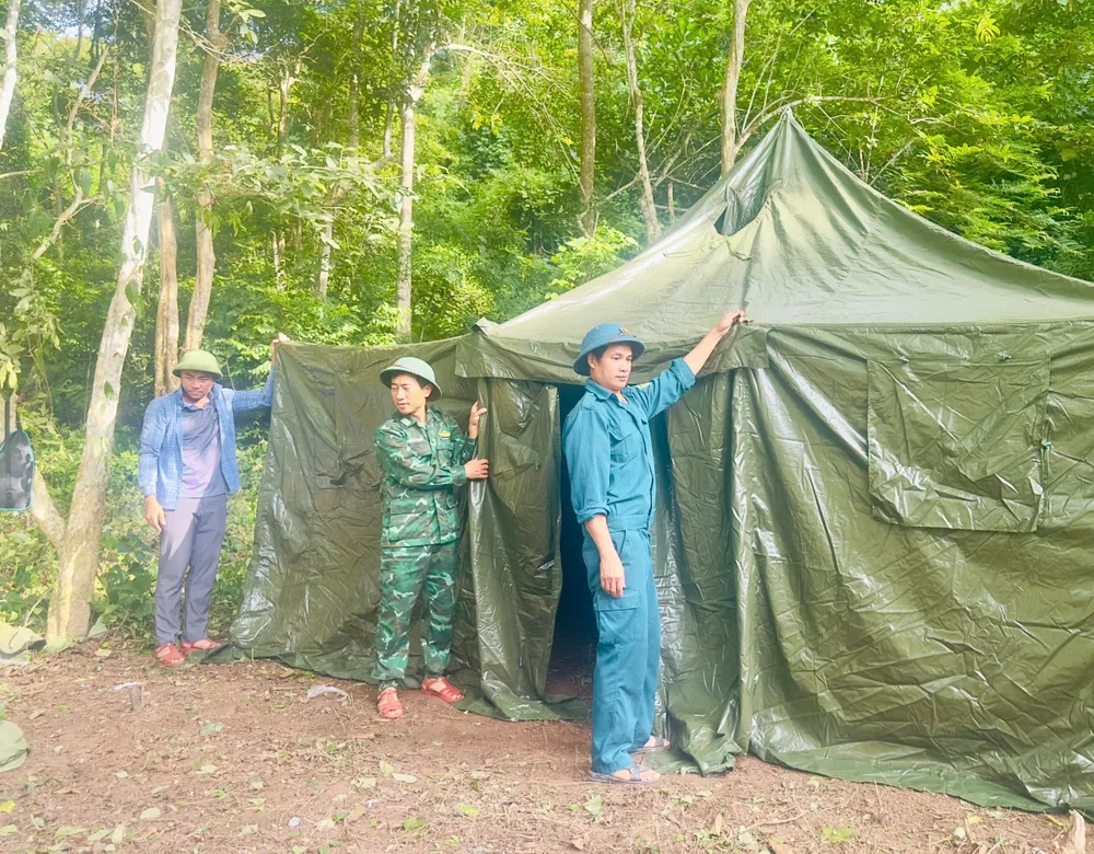 Lực lượng vũ trang tiến hành dựng nhà bạt tạm cho bà con vùng lũ. Ảnh: địa phương cung cấp