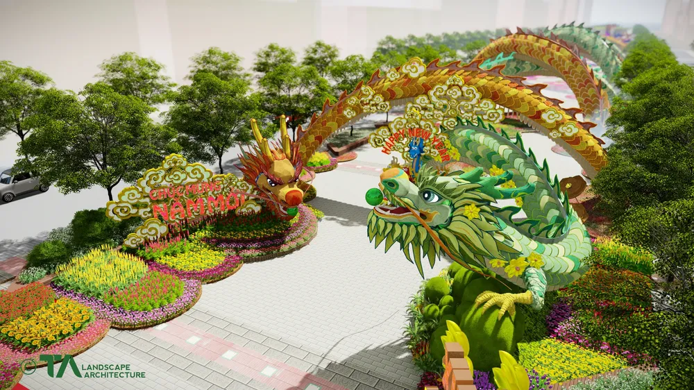 Ngôn ngữ chủ đạo được thể hiện xuyên suốt Đường hoa Tết 2024 là yếu tố truyền thống văn hóa, tín ngưỡng lâu đời của người Việt hòa điệu cùng bản sắc văn hóa vùng đất phương Nam.