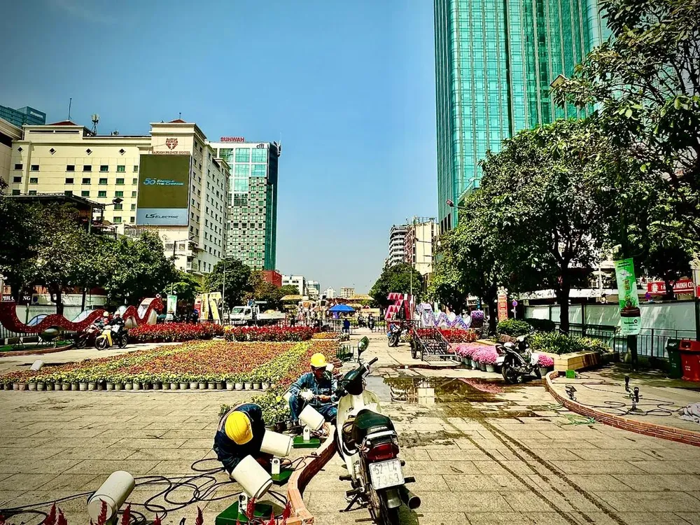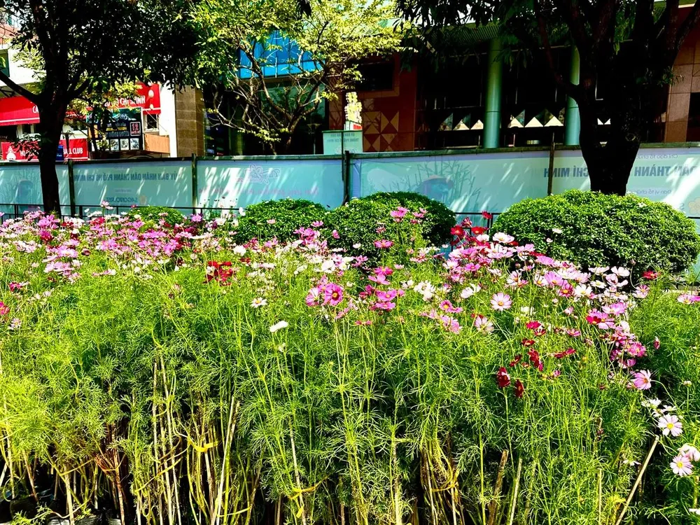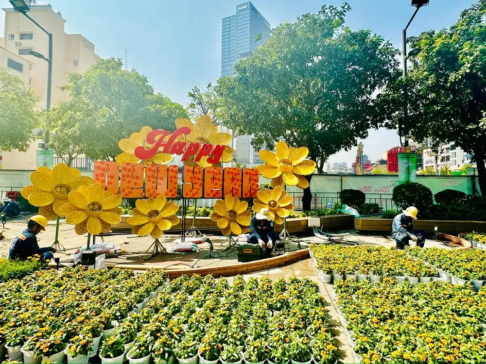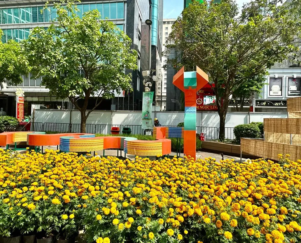 Đường hoa Nguyễn Huệ năm nay sử dụng một khối lượng lớn nền hoa, ước tính tổng cộng lên đến 109.000 giỏ hoa tươi các loại