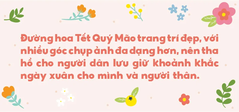 (ĐTTCO) - Đường hoa Tết Quý Mão trang trí đẹp, với nhiều góc chụp ảnh đa dạng hơn, nên tha hồ cho người dân lưu giữ khoảnh khắc ngày xuân cho mình và người thân.