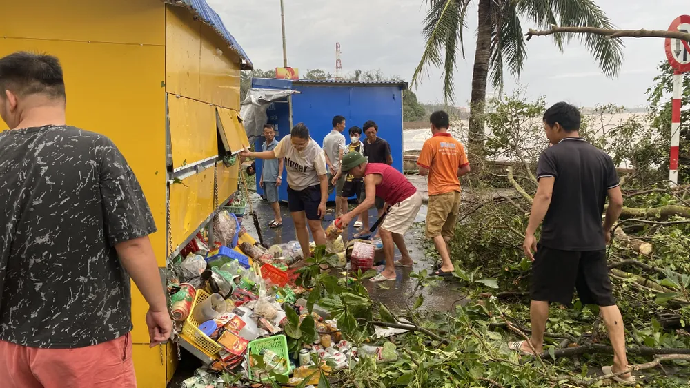 Dưới Bến Thốc nhìn ra biển, hai ki-ốt của chị Lý Thị Lương và Đinh Thị Đào bị bão lật nhào ra đường. Bên trong, nước uống, bánh kẹo đổ vỡ, hư hại. Nhìn cảnh nhà cửa, hàng quán, cây cối, dây điện… tan hoang, ngổn ngang trước mắt, người dân buồn rầu, xót xa không nói nên lời.