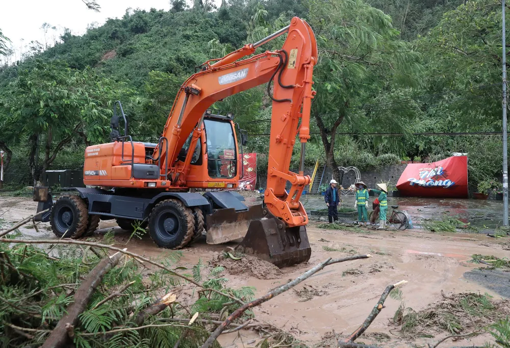 Sáng sớm 8-9, UBND quận Đồ Sơn cũng đã điều động nhân lực, máy xúc tới khu 1 để dọn dẹp bùn đất, cây cối đổ gãy nhưng khối lượng công việc theo ước tính là rất lớn, không thể làm xong nhanh chóng.