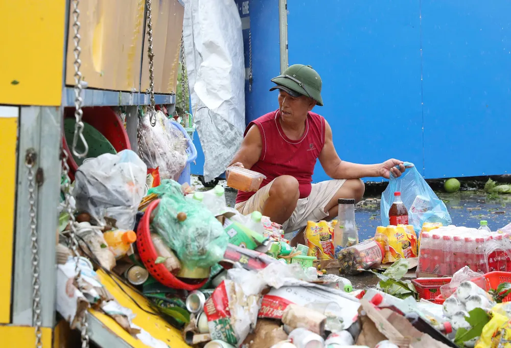 Người dân thất thần, xót xa nhìn tài sản bị bão cuốn đi. Ảnh: QUANG PHÚC