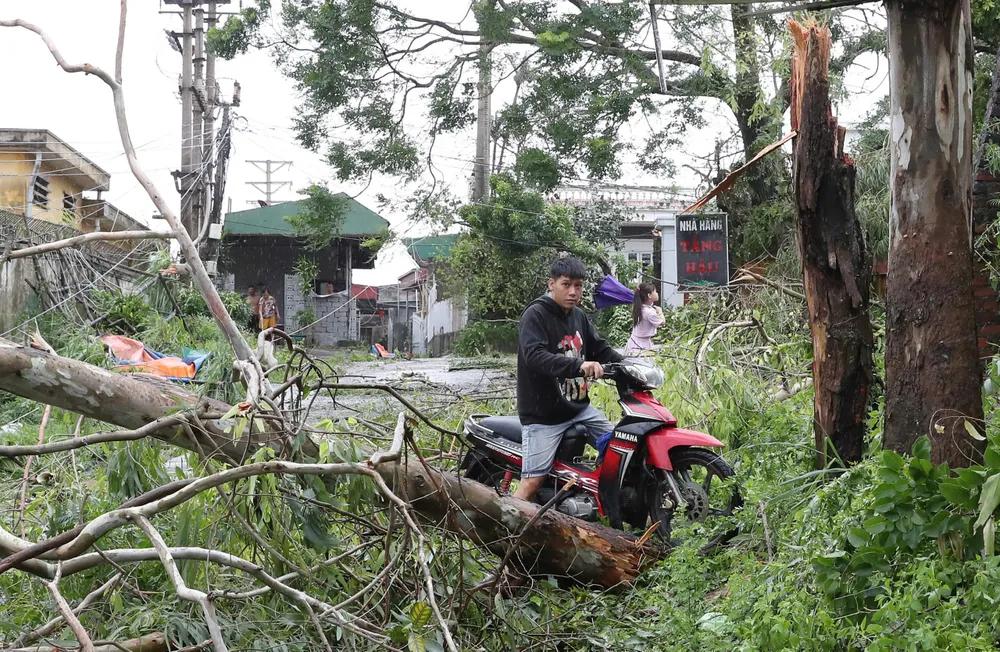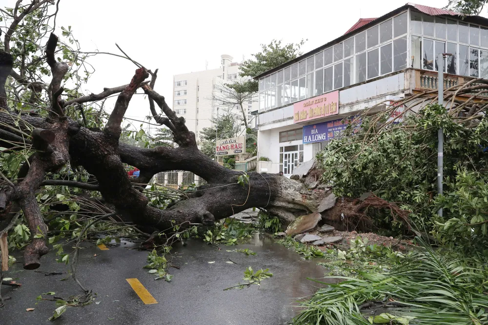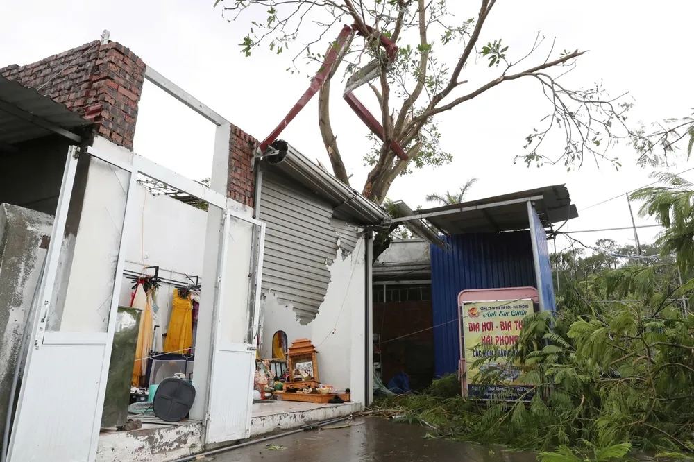 Tại khu du lịch Đồ Sơn đã lặng gió dần, mưa cũng giảm. Thế nhưng, đâu đâu cũng chỉ là một "rừng" cây đổ ngổn ngang trơ gốc, ngọn. Dây điện đứt, rụng ngang mặt đất. Đường ngập, hàng quán xiêu vẹo, mái tôn, cửa kính sập vỡ hàng loạt…