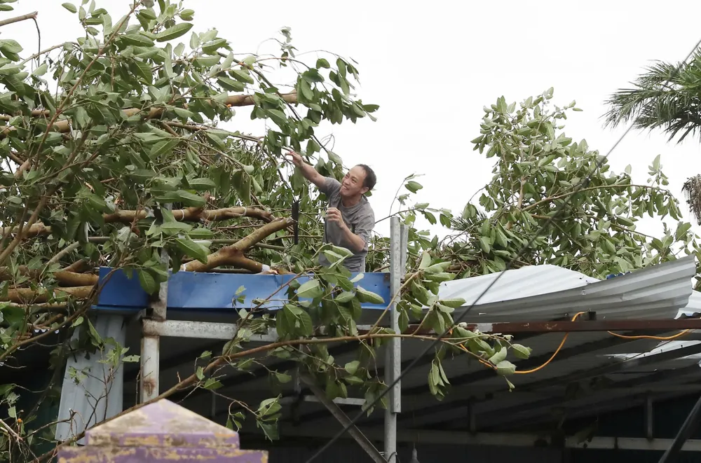 Người dân dọn bớt cành cây trước nhà. Ảnh: VĂN PHÚC