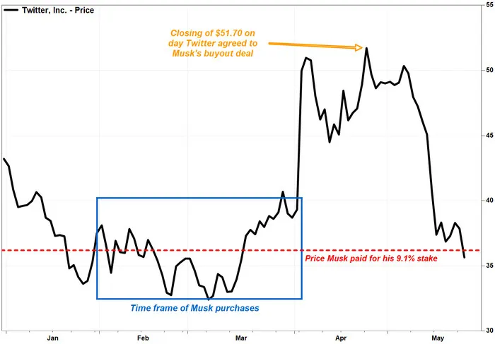 Giá cổ phiếu Twitter sau khi Musk tiếp quản | Nguồn: MarketWatch