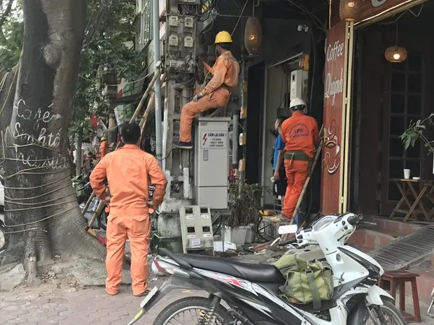 Nhân viên EVNHANOI kiểm tra vận hành thiết bị điện. (Ảnh: PV/Vietnam+)