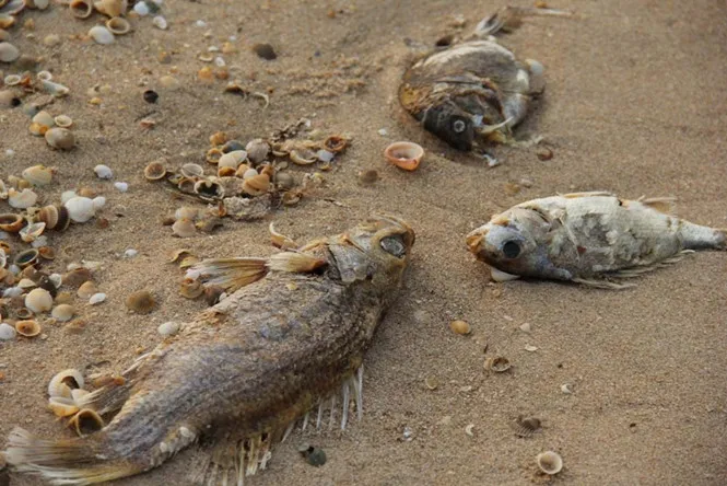 Theo quan sát, ngày 22.4, dọc bờ biển Vũng Áng, đoạn qua các xã: Kỳ Nam, Kỳ Phương, Kỳ Lợi (TX.Kỳ Anh, Hà Tĩnh), cá, tôm, mực, ghẹ, ốc, ngao, sò vẫn tiếp tục chết dạt vào bờ với mật độ khá dày và bốc mùi hôi thối. Nước biển ở những khu vực này có màu khác thường, đặc biệt tại khu vực gần cảng biển Vũng Áng, nước có màu đen như màu nước xỉ than.