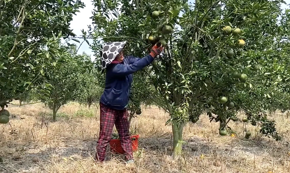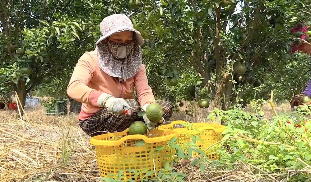 Nông dân vùng ĐBSCL thu hoạch cam