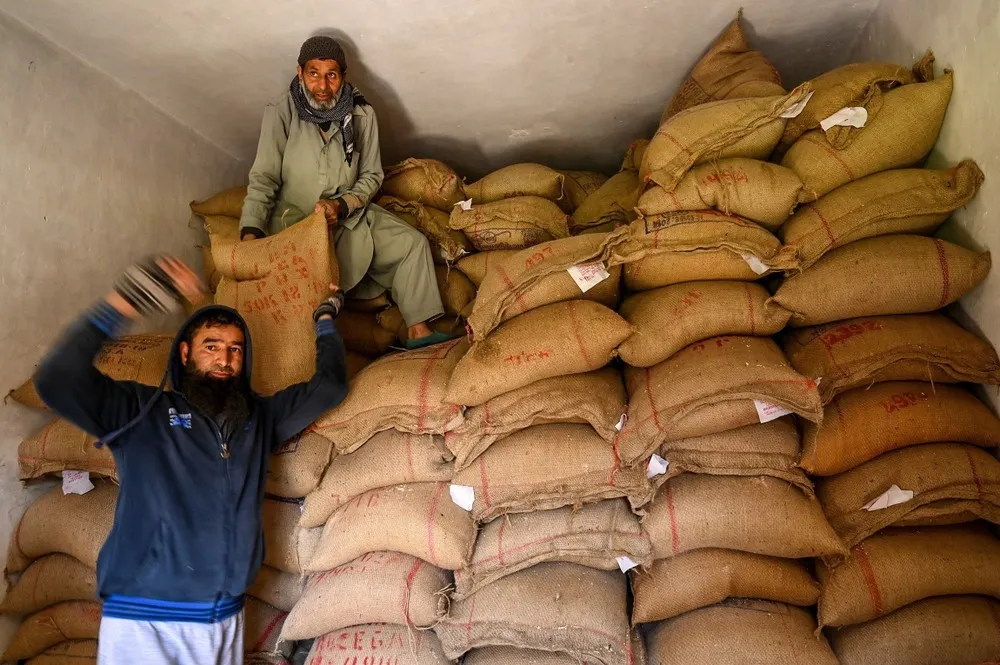 Vận chuyển gạo tại kho ở Srinagar, Ấn Độ. (Ảnh: AFP/TTXVN)