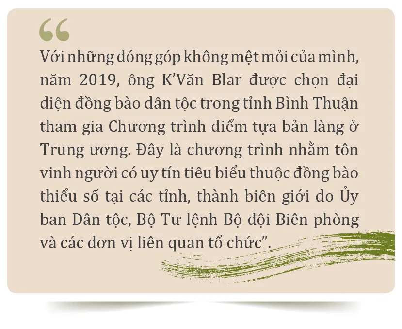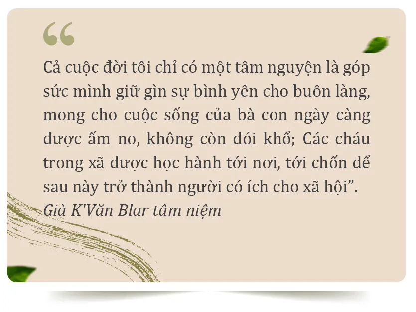 Hiện nay dù tuổi đã cao nhưng già K’Văn Blar vẫn tham gia làm Chủ tịch Hội Người cao tuổi của xã, là tấm gương sáng của buôn làng.