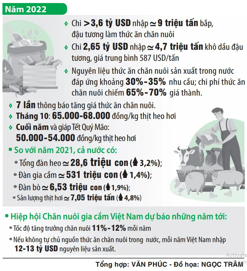 Theo Sở NN-PTNT tỉnh Long An, hiện nay hầu hết các cơ sở chăn nuôi lớn trên địa bàn đều sử dụng thức ăn nhập khẩu. Trước tình trạng giá thức ăn tăng, ngành chức năng khuyến cáo người chăn nuôi nên tiêm phòng vật nuôi, thường xuyên kiểm tra không để gia súc gia cầm, thủy sản bị bệnh nhằm giảm rủi ro. Lựa chọn nguồn thức ăn từ các cơ sở uy tín, nguồn gốc rõ ràng. Người chăn nuôi không nên tìm nguồn thức ăn giá rẻ để giảm giá thành mà cần phải tìm hiểu kỹ, thử nghiệm có kết quả tốt mới thay đổi để không ảnh hưởng đến năng suất.